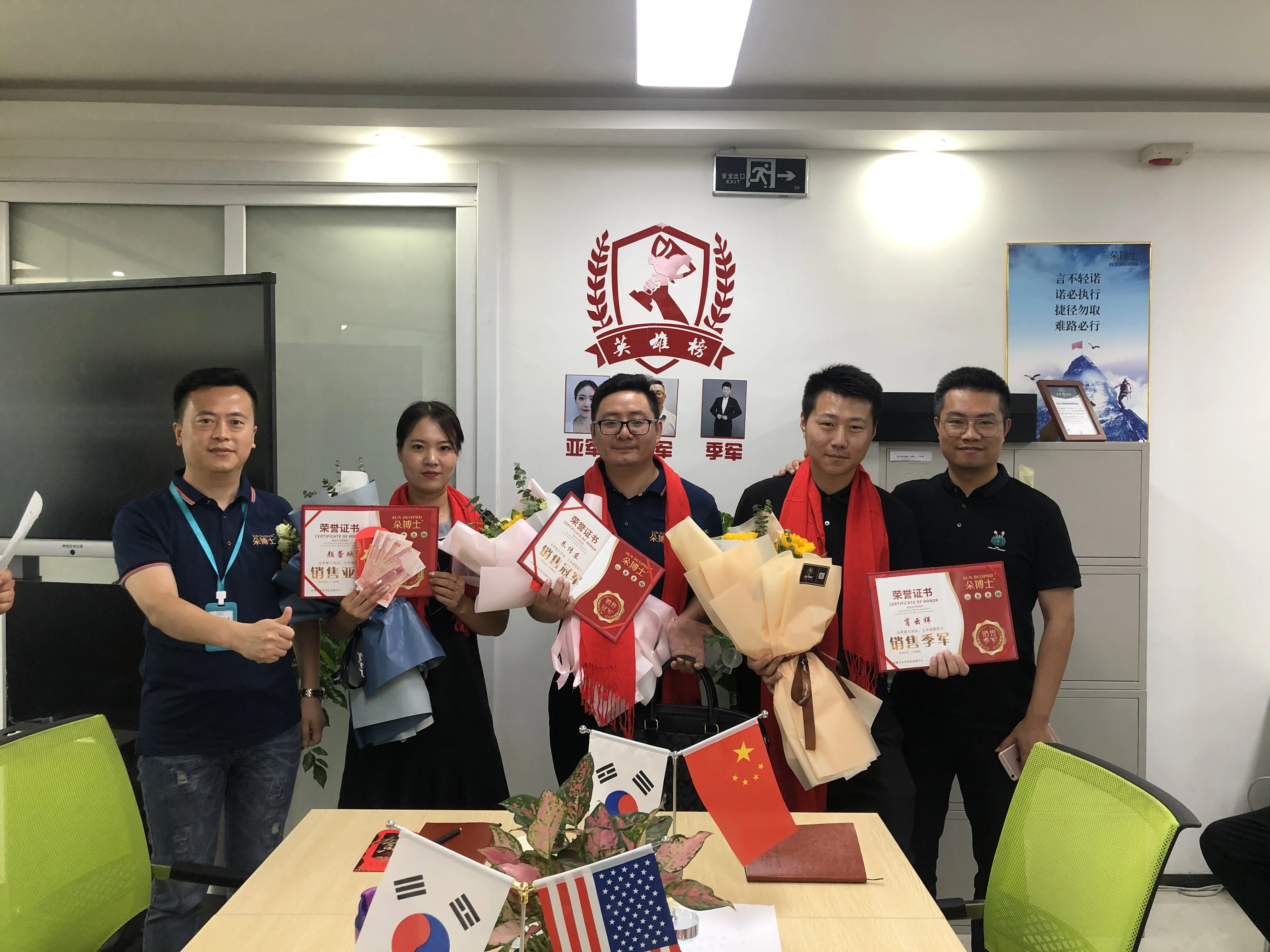 在会议最后厉璇组织了振奋人心的月度销售冠军授勋仪式”。这几个月,朵博士铁军驰骋沙场,执弯弓射强虏,提长枪破顽敌,取得了一场又一场的胜利。所谓十万之军无将,军必大乱,朵博士能够取得如今的成绩,与将帅们的英勇和韬略是分不开的。我们的将帅不仅运筹于帷幄之中,更一个个亲赴战场,他们是满身功勋的司令员,他们是战功累累的大将军,他们是纵横疆场的指挥官。会议现场,铭森优秀的指挥官们授勋,所有朵博士的伙伴观摩,这是荣耀加身的时刻,这是值得所有人牢记的时刻。